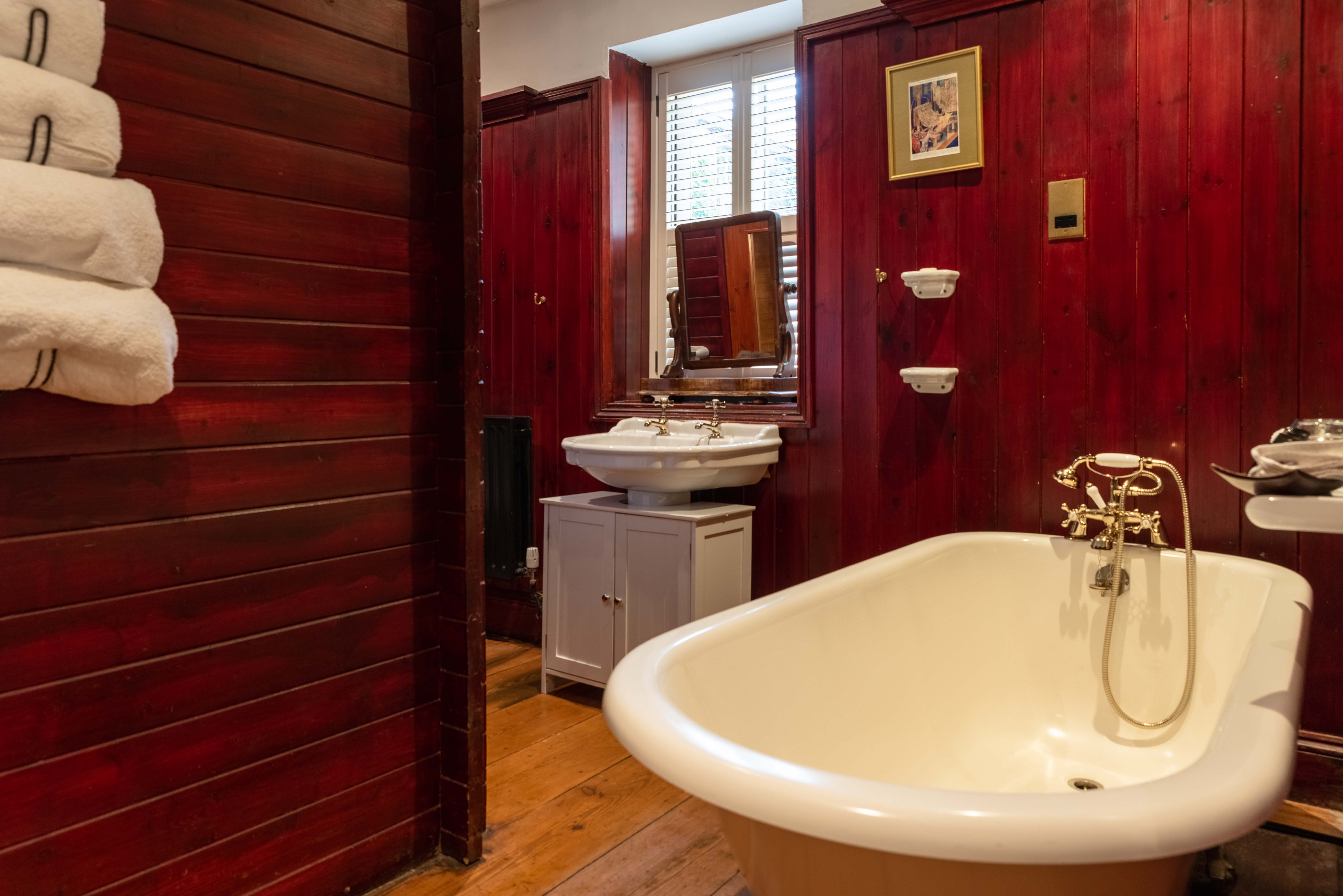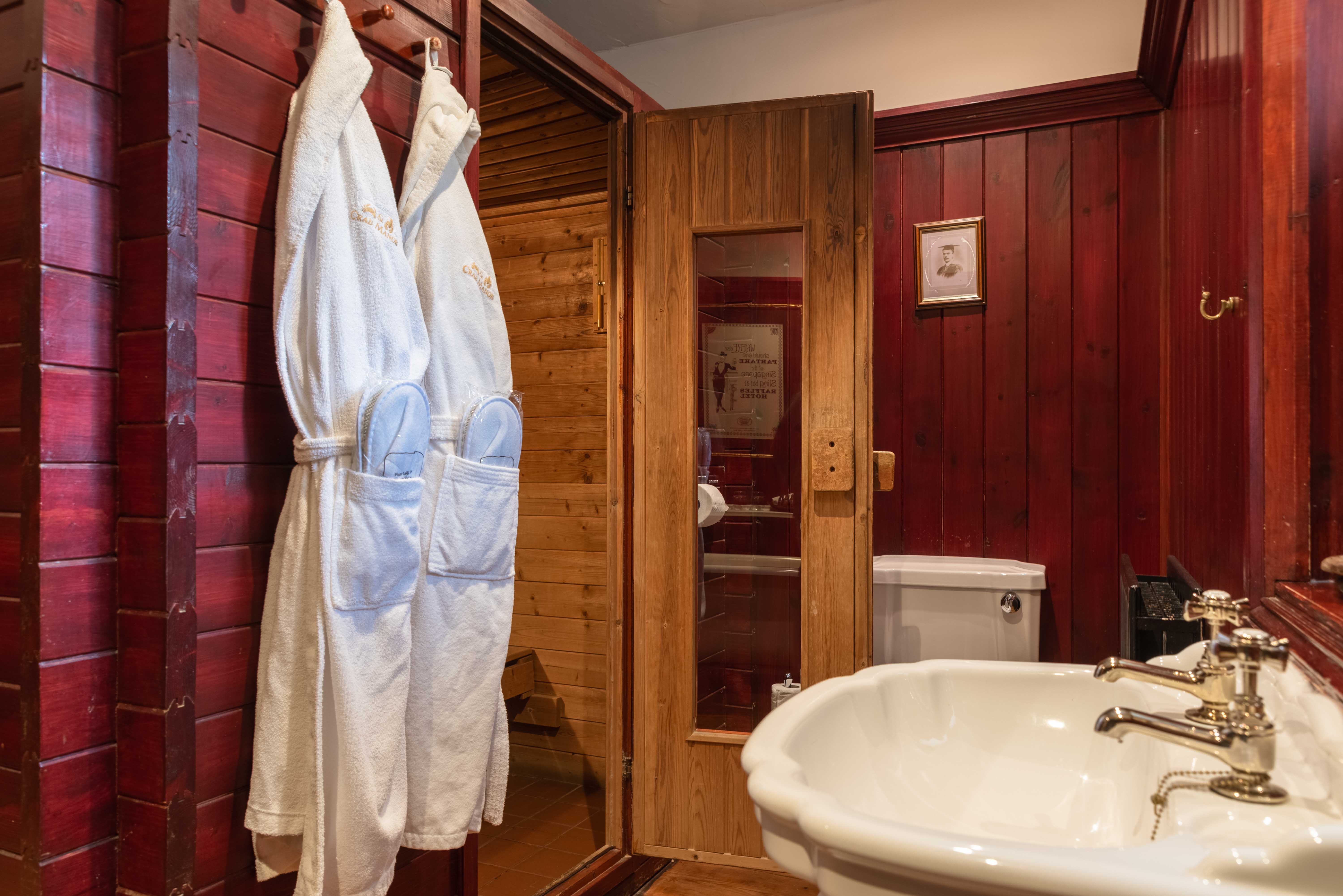 To add an even more exotic touch to your stay, this luxurious room has its own built-in sauna, private outdoor hot tub, a lounge area, roll top bath and a courtyard.