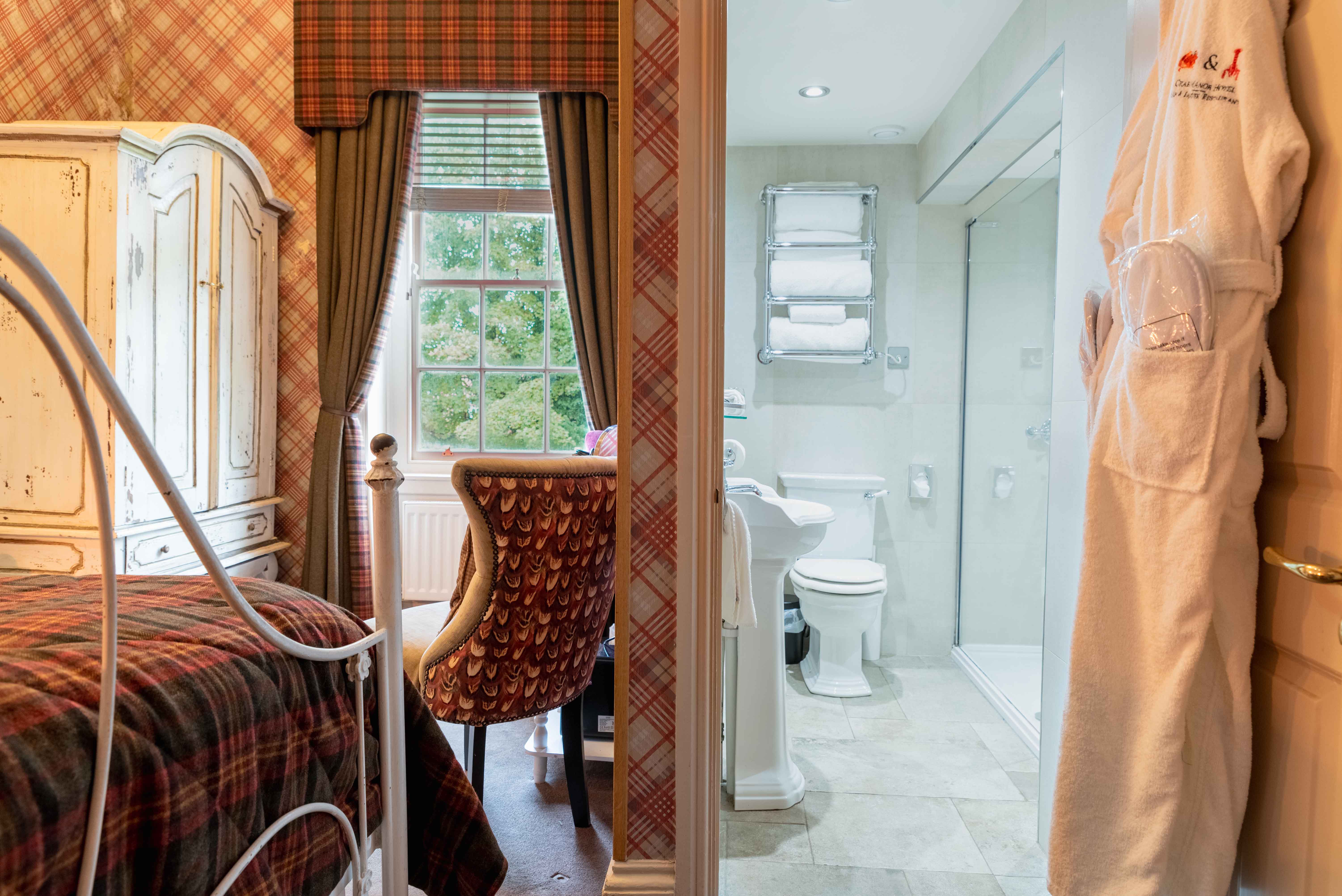 Turnberry is located on the first floor of the Manor House with a walk in shower, and has the use of our communal courtyard sauna and hot tub.